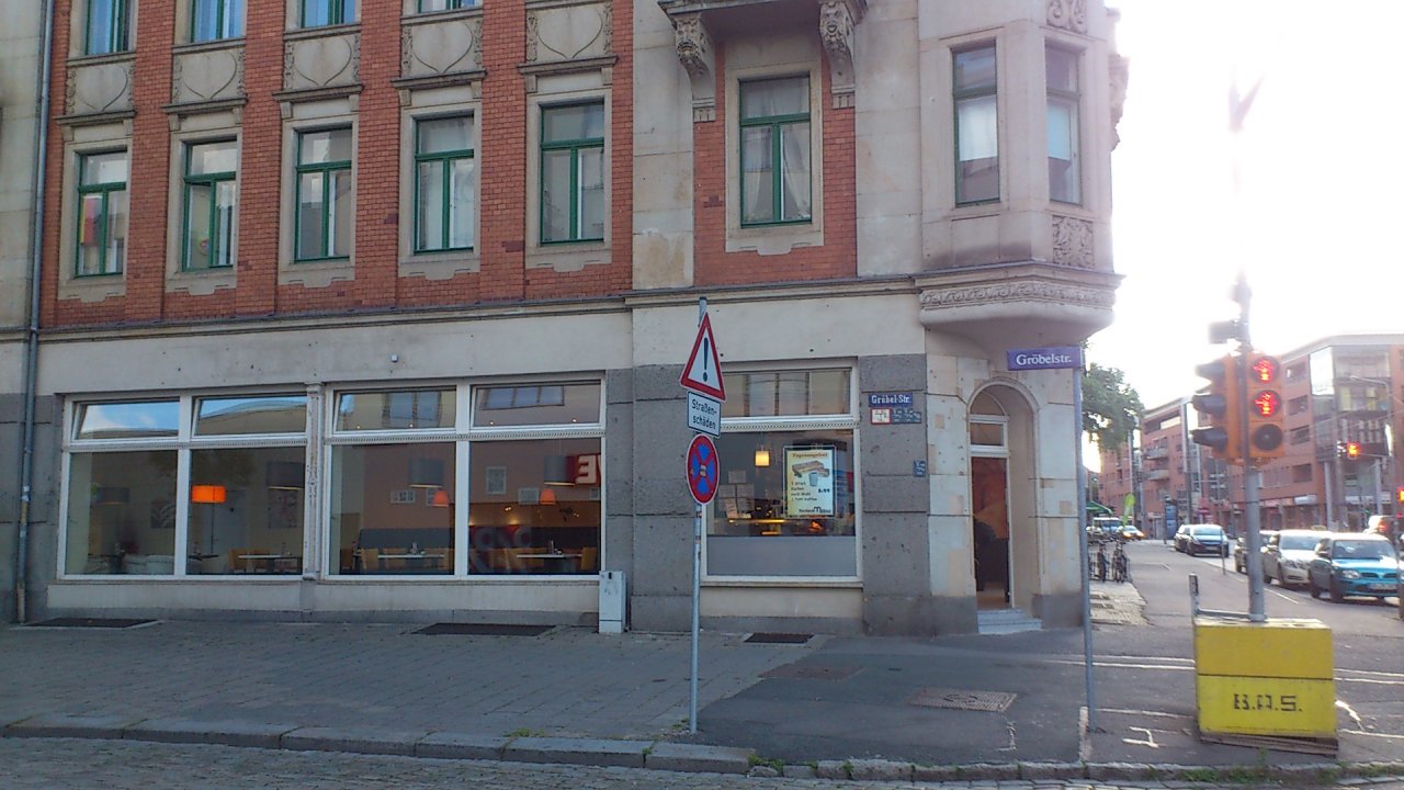 An der Ecke Gröbelstraße/Kesselsdorfer Straße ist Möbius in die ehemaligen Räume der Norisbank eingezogen. Hier kann man jetzt den Trubel der Zentralhaltestelle hinter großen Fensterscheiben genießen.